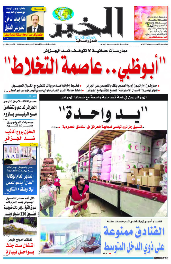 وقالت جريدة “الخبر”، أن ” الإمارات قامت بـ”ابتزاز تونس”، الجارة الشرقية للجزائر، بـ”أموال لقطع العلاقات مع الجزائر”، بعدما استفادت تونس من مليار دولار من الإتحاد الأوروبي و 500 مليون دولار من المملكة العربية السعودية، إضافة إلى قرار قمة إيطاليا لمجابهة ظاهرة الهجرة، باستحداث صندوق للمانحين، شاركت فيه الأمارات بمليو دولار، لصالح تونس وليبيا.