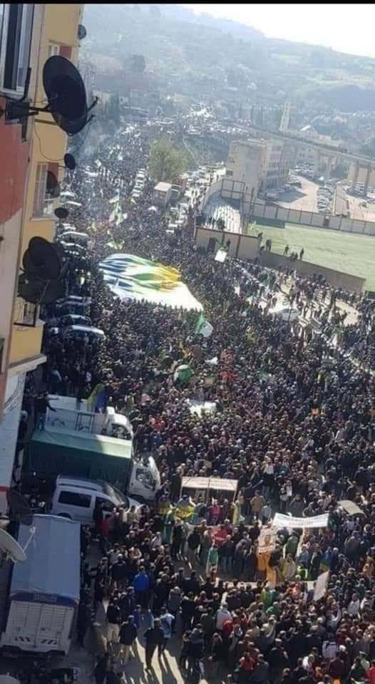 شهدت مدينة خراطة بولاية بجاية شرق الجزائر، اليوم الثلاثاء 16 فيفري مظاهرة شعبية عارمة شارك فيها جزائريون من مختلف ولايات الوطن، احتفالاً بالذكرى الثانية للحراك الذي انطلق في 22 فبراير من العام 2019.