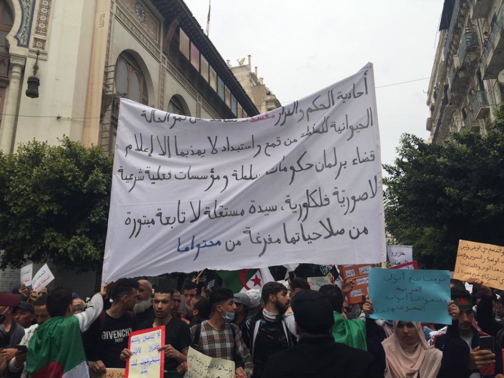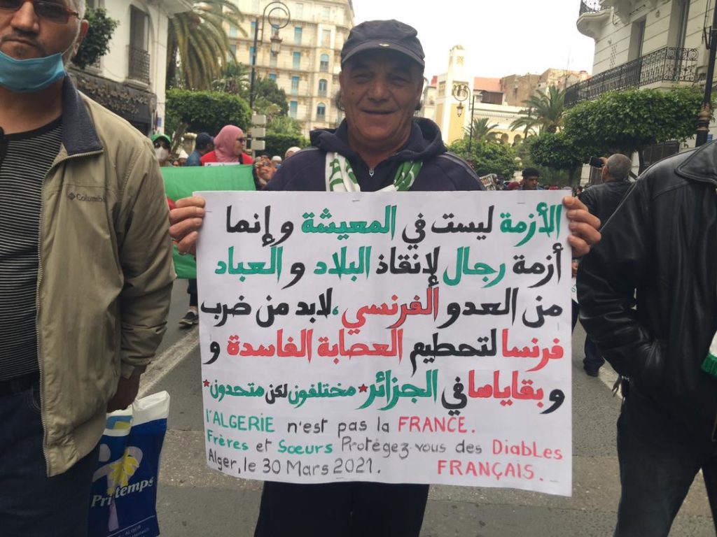 “60 سنة فرنسية رانا حابينها جزايرية” و”ماكانش إسلامي ماكانش علماني كاين عصابة تسرق عيناني” أكثر شعارين رفعهما الحراكيون والحراكيات، اليوم الثلاثاء، في مسيرة الطلبة العاشرة بعد المئة.