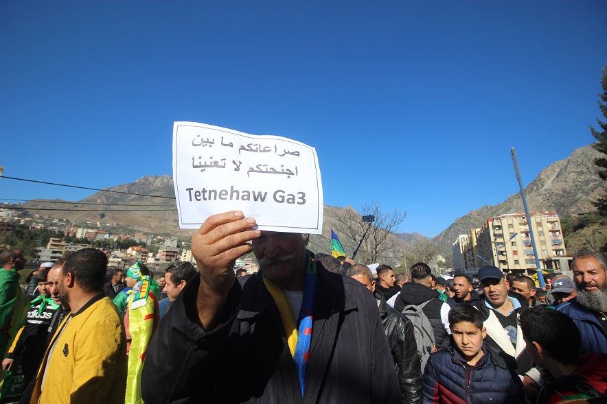 “نحن هنا من أجل رحيل النظام، فالجيل الجديد من الجزائريين سئم من نظام الحكم القائم، نريد قطيعة تامة معه من أجل جزائر حرة وديمقراطية، مادامت مطالبنا لم تتحقق سنواصل النضال إلى غاية الذهاب نحو الجمهورية الجديدة التي يريدها غالبية الشعب الجزائري”، يقول أحد المشاركين لـ “راديو أم”.