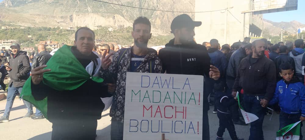“جئنا إلى هنا لأننا عناصر من هذا الشعب، لأن الثورة السلمية انطلقت من خراطة، هذه الثورة حققت العديد من الإنجازات والمكاسب، لقد حققنا وحدة الشعب والوعي العام، وبأن يكون المواطن في القرن الواحد والعشرين حرا في بلاده وأن يستفيد من كل حرياته”، تقول المحامية ورئيسة حزب التغيير والرقي زبيدة عسول.