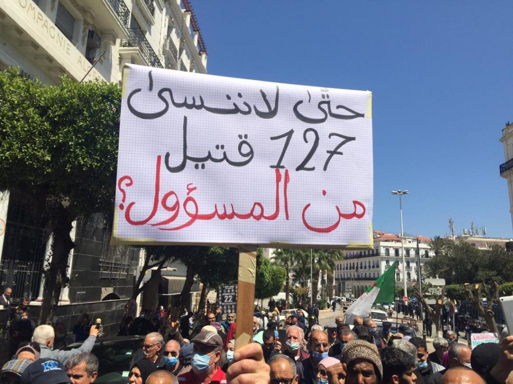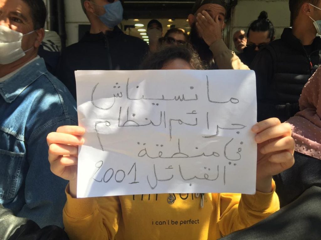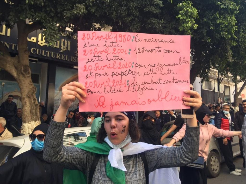 ورفعت المسيرة الطلابية لافتات تُعبّر عن عدم نسيان تلك الحقبة الزمنية من تاريخ الجزائر ونضال الشعب، كلافتة كُتب عليها “ما نسيناش جرائم النظام في منطقة القبائل 2001″، ولافتة أخرى كُتب عليها “النظام الذي اغتال ماسينيسا بحجة أنّه بلطجي، نفسه النظام الذي يسجن الوطنيين بتهم الخيانة ، فيصنع من الطغاة أبطالا ليجعلوا من الجزائر مستعمرة باستقلال مُزيّف”.ّ