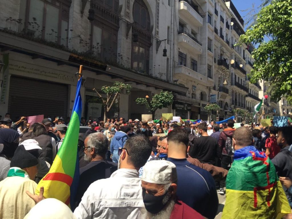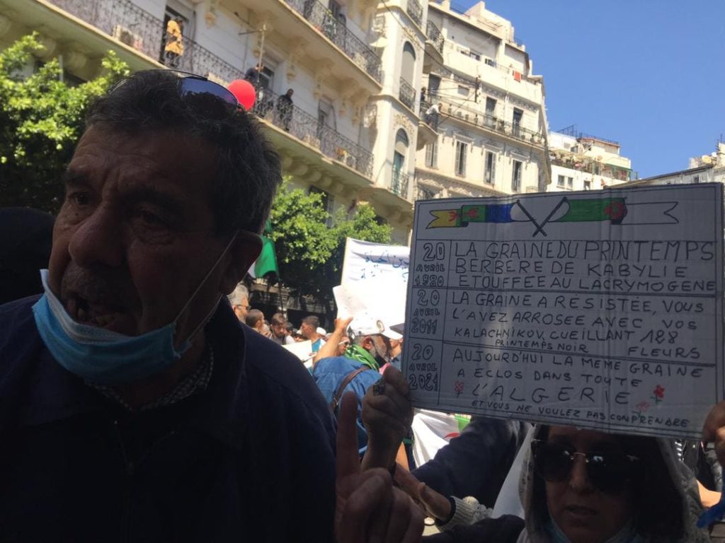 وحمِل الطلبة الجامعيون والمواطنون الذين رافقوهم في مسيرة العاصمة، الراية الأمازيغية وكتبوا حرف الياز الأمازيغي على وجوههم، كما ردّدوا شعار “إمازيغن قصبة باب الواد” و”أولاش السماح” أي “لن نسامحكم”، بالإضافة إلى “حكم مُجرم”.
