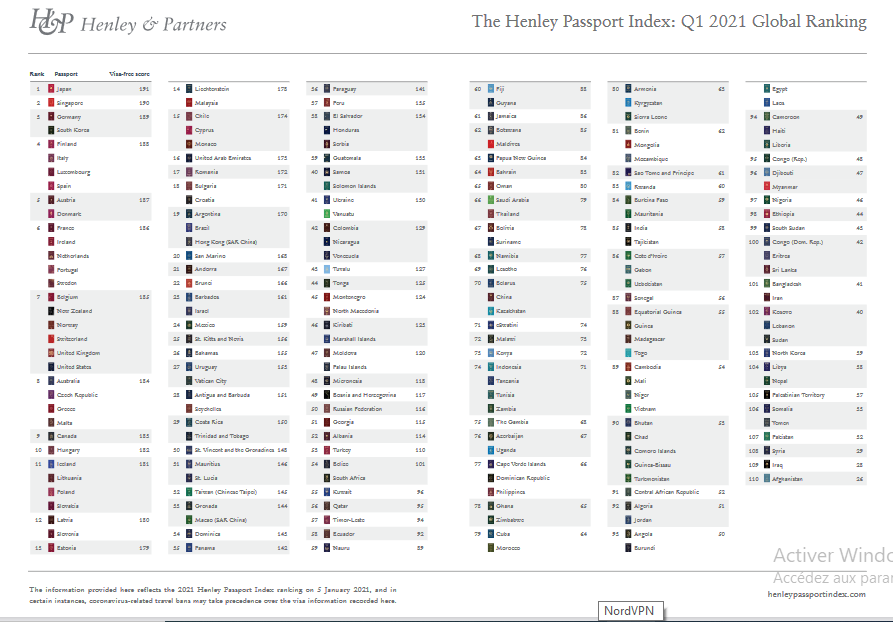احتل جواز السفر الجزائري المرتبة 92 من أصل 110 دولة، في قائمة ترتيب جوازات السفر عبر العالم حسب مؤشر “هينلي” لسنة 2021.