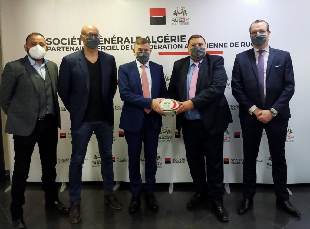 تعلن شركة سوسييتي جينرال الجزائر عن تجديد شراكتها الرئيسية مع الاتحادية الجزائرية للروغبي للعام الخامس على التوالي، تم ذلك خلال حفل توقيع على مستوى مقرها الرئيسي بـ بئر خادم، مع احترام توجيهات الوقاية من فيروس كوفيد19.الحفل تم بحضور رئيس مجلس إدارة بنك سوسيتي جينرال الجزائر إريك ورمسر، إلى جانب رئيس الاتحادية الجزائرية للروغبي سفيان بن حسان، برفقة وفديهما