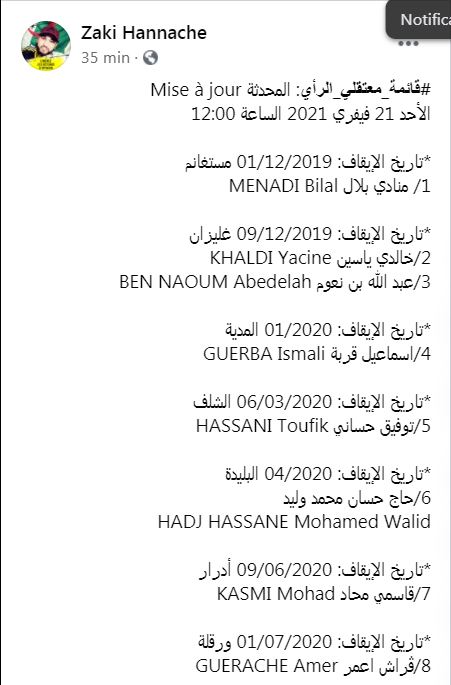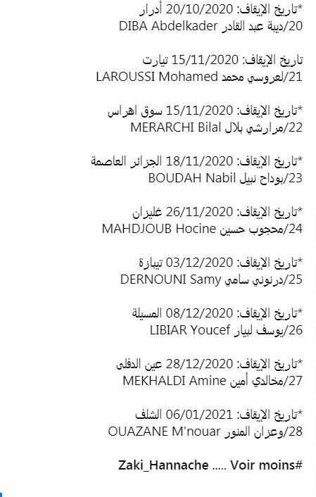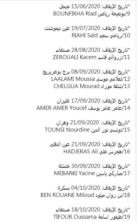 قائمة سجناء الرأي والحراك لحدّ الساعة: