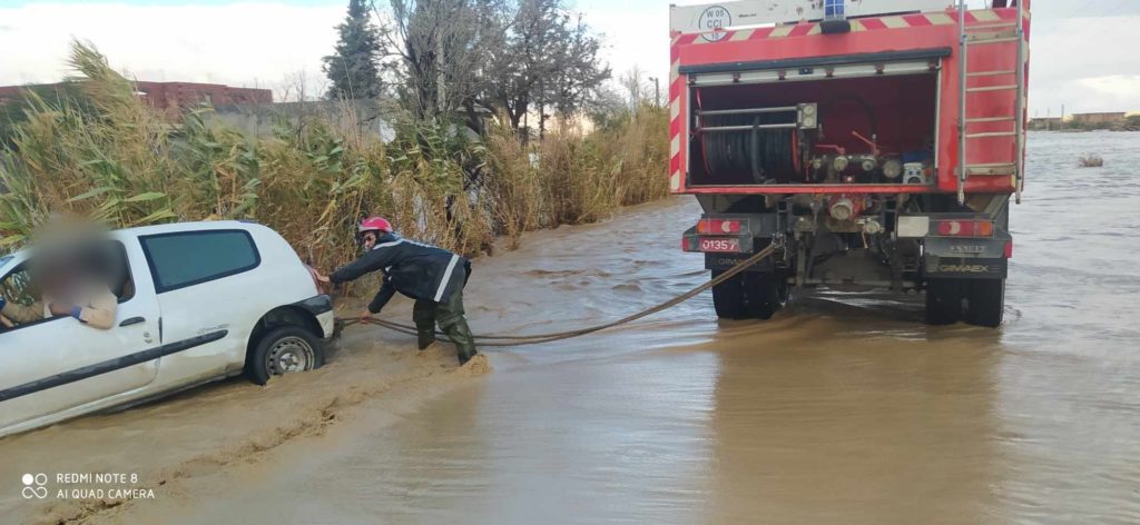 كما نشرت ذات المصالح صور ومقاطع يديو لحظة إنقاذ شخص كان على متن سيارته جرفته السيول بمنطقة الطورنة بجرمة وصور لتدخلات وحدات بالطريق الوطني رقم 75 باقليم دائرة سريانة، بلدية عين ياقوت، بومية وبلدية قصر بلزمة وتدخلات لفائدة لبعض مستعملي الطريق، بسبب ارتفاع منسوب المياه، مع تقديم توجيهات للمارة.