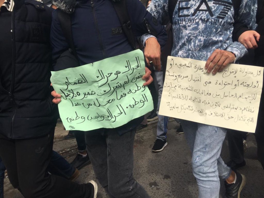 وأوقفت عناصر الأمن عددا من المتظاهرين والنشطاء والطلبة على خلفية لافتات رفعوها أثناء المسيرات، وأودع عدد منهم الحبس مثلما كان عليه الحال مع الطالبة الجامعية نور الهدى دحمان ومسعود لفتيسي الناشط السياسي وآخرون.