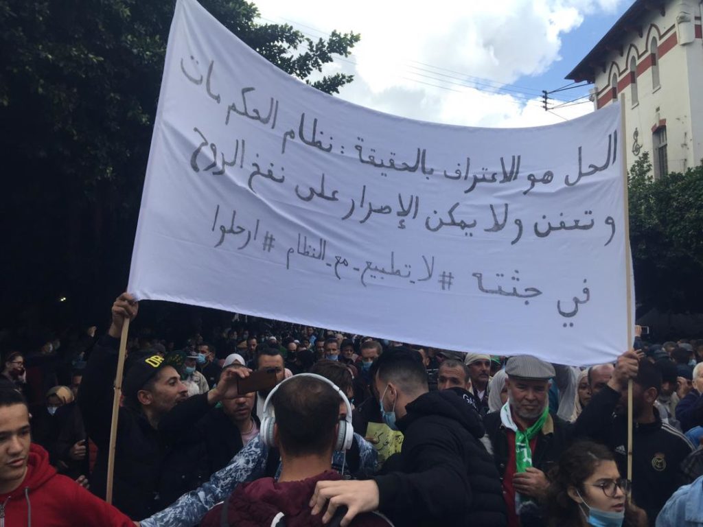 وفي سؤالٍ عمّا إذا كانت اللافتات تُترجم مُصالحة الجزائريين والجزائريات مع السياسية، قال المعارض السياسي إنّ “لا وجود لمصالحة، فالشعب المنخرط في الحراك في قطيعة تامة مع النظام، أيضا وعي سياسي حقيقي وُلد داخل الحراك الشعبي، لكنها لا تتماشى تمامًا مع السياسة التي يطبقها النظام”.