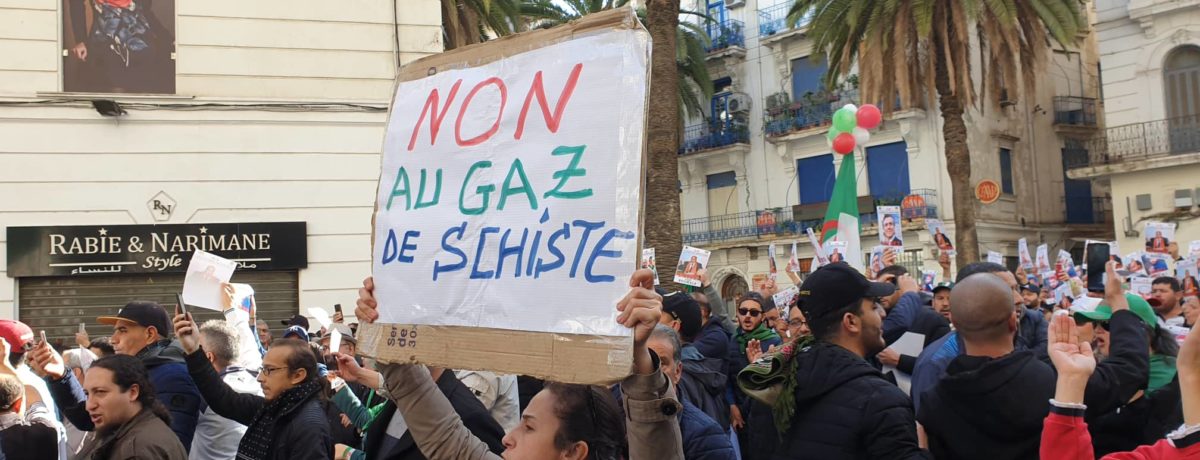 La protestation contre l’exploitation du gaz de schiste est venu répondre à la décision annoncée par le chef de l’Etat. “makan la ptérole makan la sakhri koulou lefrança tdirou fi Paris” (Ni pétrole ni schiste dites à la France de l’exploiter à Paris).