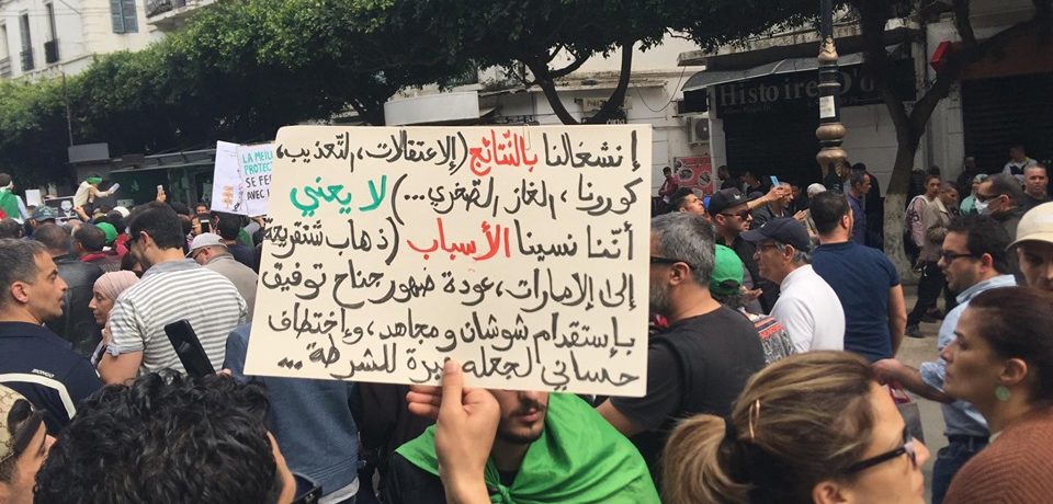 Le 56ème vendredi a été l’occasion de commencer un travail de sensibilisation pour convaincre, une partie des manifestants toujours très réticents, de faire une “pause” dans les marches. Une jeune femme a appelé dans sa pancarte à “suspendre les manifestations jusqu’au 3 avril pour nous protéger. Le système ne nous protègera pas. Qu’en pensez-vous? Le Hirak est le nôtre et on fait ce qu’on veut”.