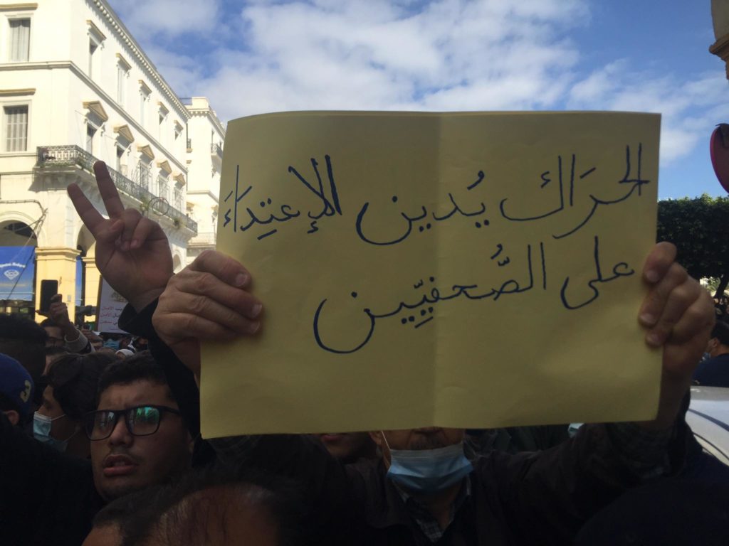 11h24 : les étudiants brandissent une pancarte demandant la libération de leur camarade, Miloud Ben Rouane, qui été arrêté le octobre 2020.