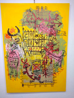 Entre le mouvement Cobra, Basquiat et Garouste, l’univers de l’artiste est fantastique, quotidien et urbain à la fois; les jardins d’enfants sont là, les marelles aux signes en témoignent mais l’ensemble est inscrit dans un ailleurs souvent hostile voire tragique où le trait s’épaissit et met en garde .