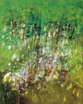 Comme dans un chant incantatoire lancinant et vibrant jusqu’à la transe, il couvrait la toile jusqu’à l’excès et l’emmenait vers l’abstraction où il ne fut alors plus question de calligraphie mais de taches colorées à la polyphonie magique.