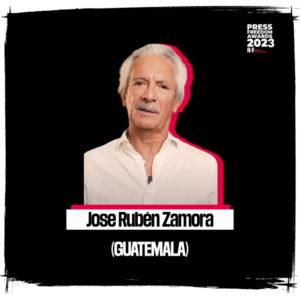 Dans la même catégorie, est nominé également Jose Rubén Zamora, fondateur du journal el Periódico, qui, deux décennies durant, a dénoncé la corruption de la classe politique guatémaltèque. Il est devenu la cible de menaces et d’un véritable harcèlement judiciaire. En juillet 2022, il est arrêté pour une affaire montée de toutes pièces de blanchiment d’argent et passe près d’un an en détention provisoire. Son journal est forcé à la fermeture en mai 2023. En juin 2023, il est condamné à six ans de prison, mais le verdict est annulé en appel le 13 octobre. Il est maintenu en détention jusqu’à la tenue d’un nouveau procès.
